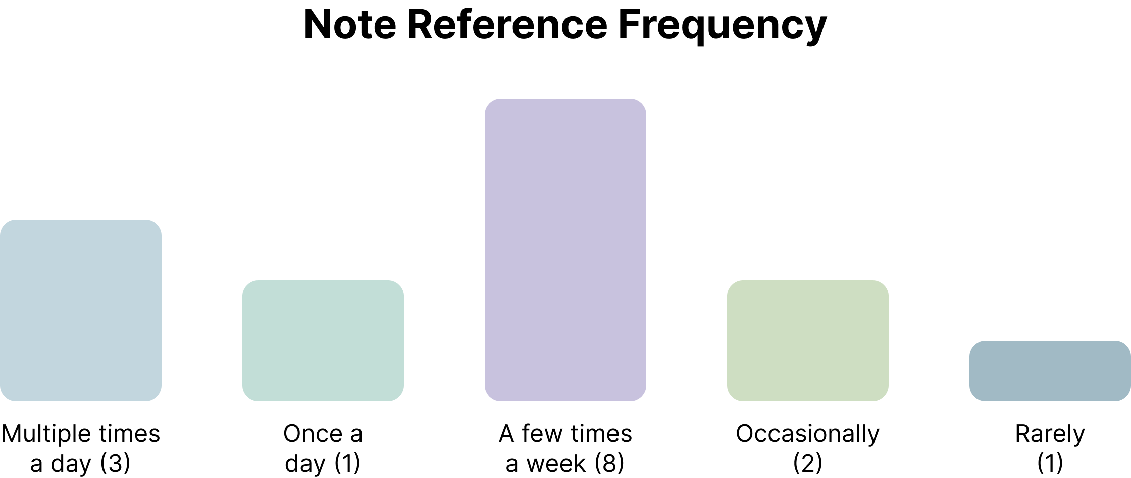 When it comes to referencing notes, most designers reported checking their notes several times per week, rather than daily.